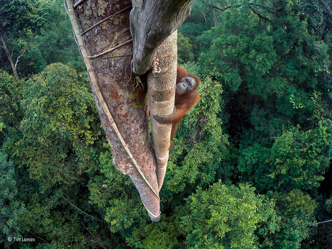 Uma imagem de um orangotango-de-bornéu numa floresta da Indonésia deu ao fotógrafo americano Tim Laman o prémio principal do concurso de fotografia de vida selvagem Wildlife Photographer of the Year 2016. A fotografia premiada faz parte de uma série de seis imagens - "Entwined lives" ("Vidas enlaçadas") -, que pretendem alertar para o perigo de extinção deste animal. As fotografias vencedoras daquele que é um dos mais prestigiados concursos de imagens da natureza do mundo vão estar em exposição a partir do dia 21 de Outubro, no Museu de História Natural de Londres, promotor da iniciativa. Ao todo, foram recebidas quase 50 mil candidaturas de mais de 95 países, revelou a organização.